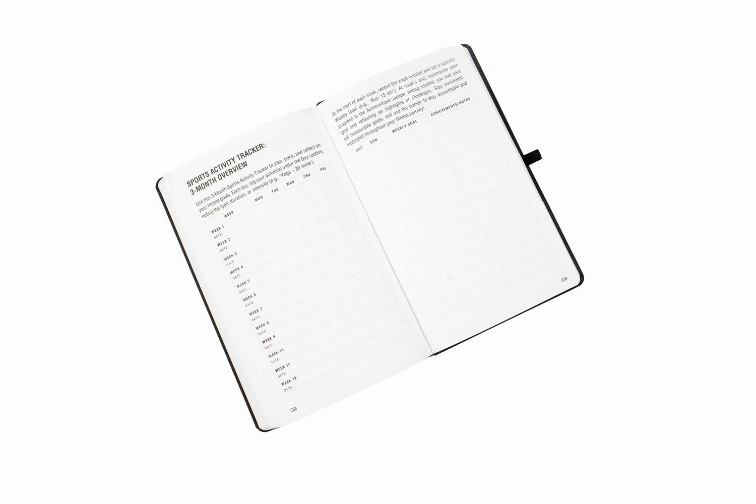 At the end of each week, a dedicated reflection page invites you to review what worked, what challenged you, and where you can improve.